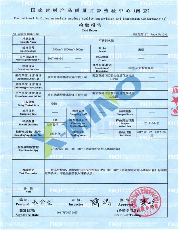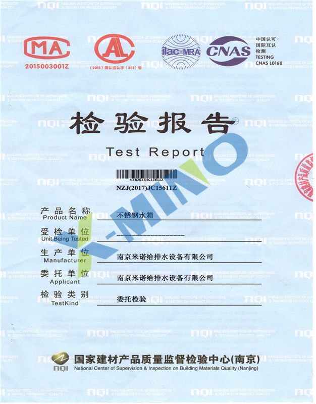 不銹鋼水箱檢測(cè)報(bào)告